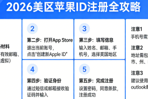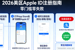 前言:新手注册美国Apple ID,常被「需美国手机号」「强制绑信用卡」「地址报错」三大痛点劝退,反复操作仍无法登录App Sto…