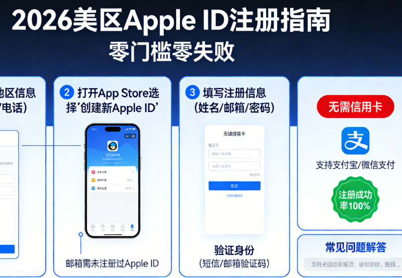 总结:2026年美区Apple ID注册核心的是“先修改设备地区为美国,再在网页端设置无支付方式”,按照本文步骤操作,新手可零失败完成注册。注册后可直接下载上述美区独供应用,解锁更多优质资源,操作简单、实用性强。