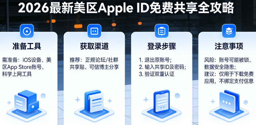 2026年苹果账号风控系统全面升级,共享ID因多人异地高频登录,极易出现账号锁定、密码失效、区域异常等问题,更暗藏设备被远程锁死、隐私泄露、财产盗刷的重大风险。这份完整版攻略,不仅梳理了零风险共享红线、手把手登录教程、高频故障解决方案,还深度盘点2026美区TOP级免费应用,逐款附上核心亮点、适用场景与精细化使用技巧,让你既能安心薅海外资源,又能轻松玩转各类APP,全程避开所有隐形坑。