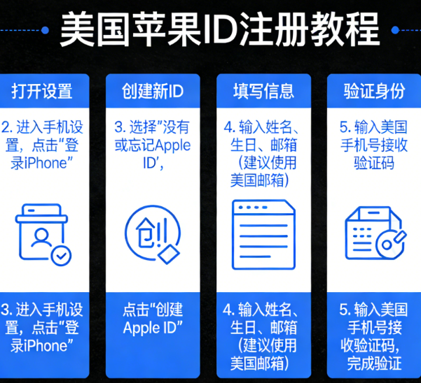 ✅ 如何自己注册美国苹果ID?—— 全程无需美国IP、无需美国手机号、无需信用卡,用国内手机号+常用邮箱就能自行注册,10分钟内完成,新手零门槛,严格跟着步骤走即可成功;