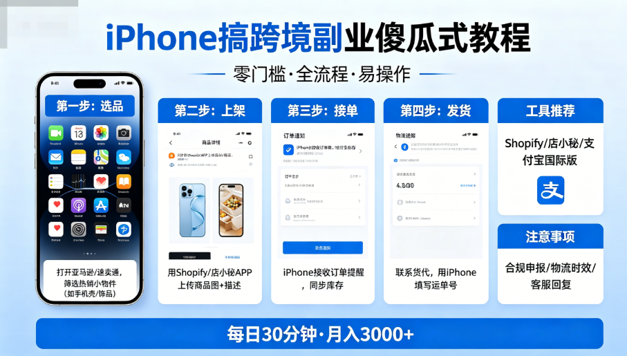 iPhone做跨境真的不难,还特别省心。日常管店不用折腾海外ID,短视频引流必备自用美区ID;网络锁死纯净固定专线,远离公共高危IP;软件按需正规安装,守住设备、账号、网络三条底线。新手不用花冤枉钱代办、不用买高端设备,照着步骤配齐配置,当天就能安稳开店、正常引流出单,轻松玩转跨境副业!