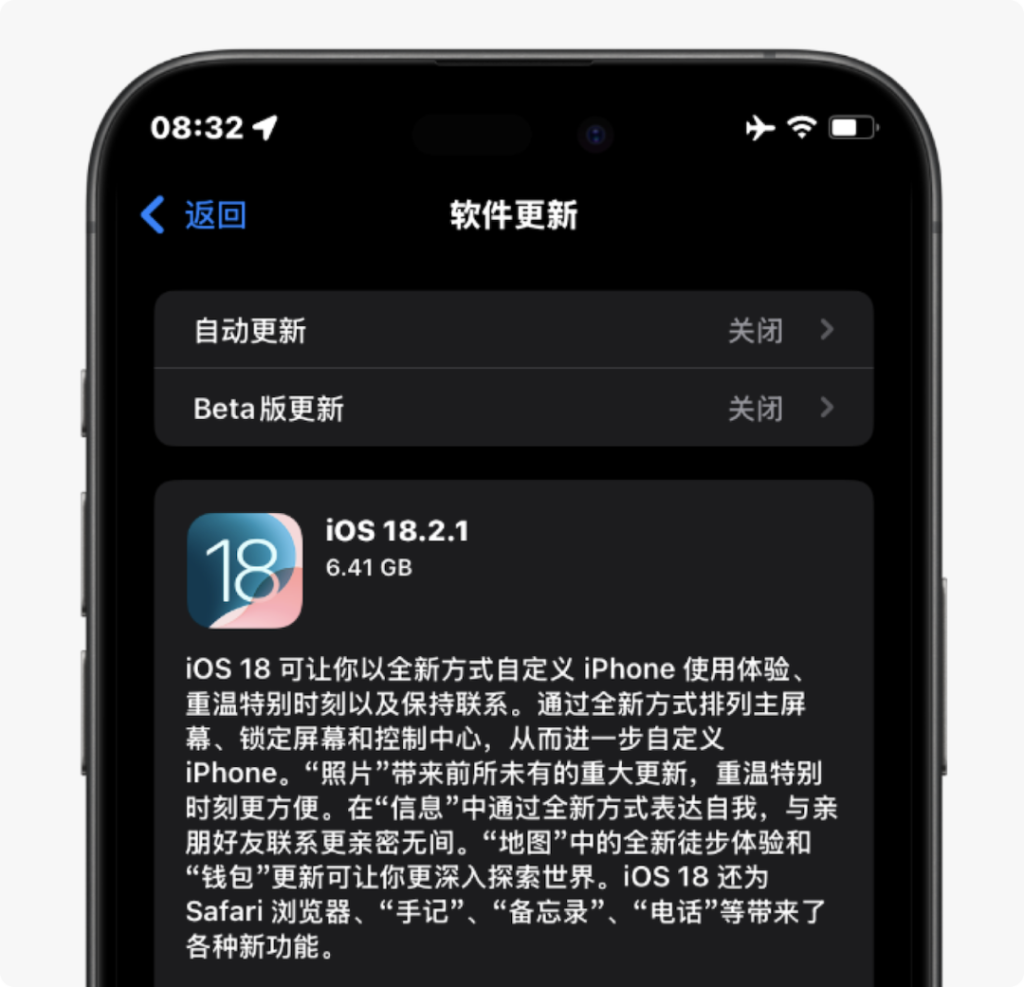 苹果在 iOS18.2.1 的更新包中这样描述:本更新提供了重要的错误修复,建议所有用户安装,但是苹果并没有说明具体修复了哪些内容