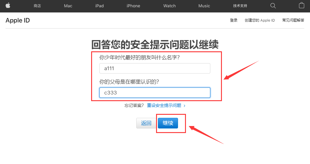 2、然后按照提示问答来输入正确的安全问答的答案,(独享ID的密保问答在你购买ID的记录里面有,注意查看)然后点击「继续」。