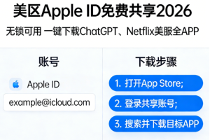 2026美区Apple ID共享 免费无锁 即登即下 美服热门APP大全 无需美国手机号 可下载ChatGPT/Netflix